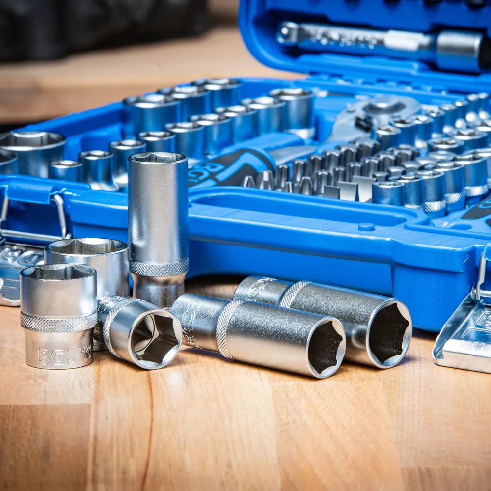 Maximal flexibles Set an praktischen, zuverlässigen und robusten Sechskant-Steckschlüsseln in metrischer Größe. Mit 1/4", 3/8" und 1/2" Antrieb, bestehend aus 192 Teilen.